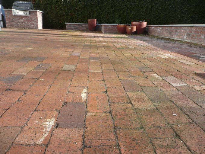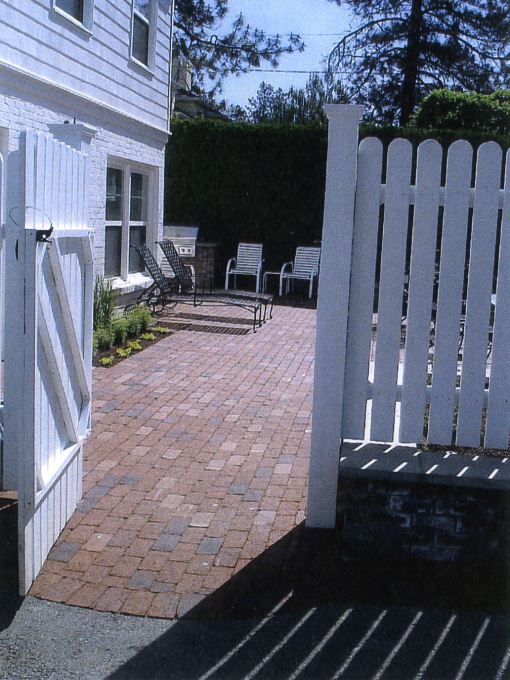 replaced with a red clay paver patio. The masonry subcontractor was able to mimic the existing brick walls of the garden by replacing the basalt