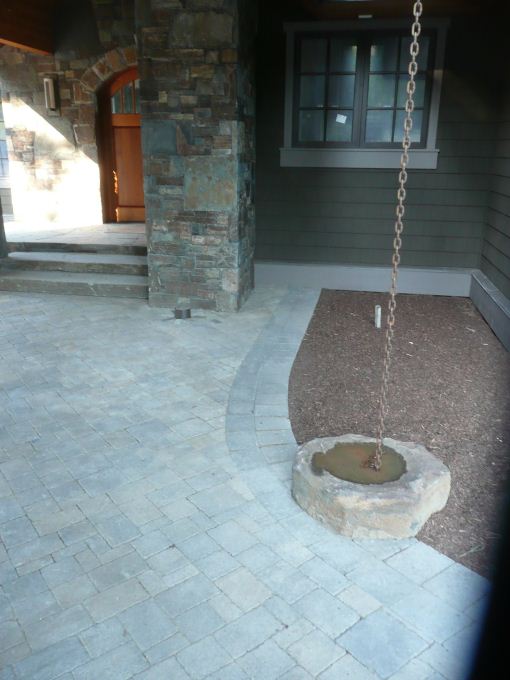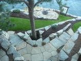 This project, located in Hope, Idaho, was completed in July of 2011. To make the landscape functional, a series of retaining walls were engineered and built to accommodate a large flagstone fire pit, a sitting area, and a patio and hot tub near the home. The work included a heated, 5,000 square foot tumbled paver driveway, 1,500 square feet of cut flagstone patios and walkways, 25 irrigation zones, 3,000 yards of fill material, and over 800 feet of drainage piping which feed 3 strategically placed treatment swales. The majority of the landscape was re-naturalized with a dryland fescue grass seed to create a more natural look and conserve water. Approximately 1,000 square feet of grass grid was installed to accommodate guest parking. The project took portions of 3 years to complete, as the landscaping was installed in phases in coordination with the General Contractor’s schedule.
